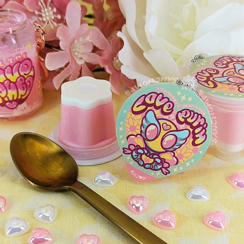 ✹ a unique pudding cup charm with a removable lid and squishy pudding toy inside!